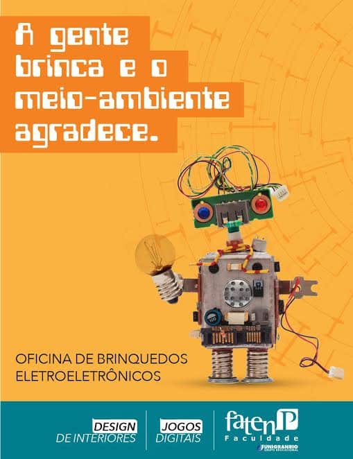 Os cursos de Jogos Digitais e Design de Interiores da Faculdade de Tecnologia Nova Palhoça (Fatenp) realizam oficina gratuita de criação de jogos com material eletroeletrônico reciclável, na Feira da Freguesia, em São José, no domingo, dia 12 de fevereiro.