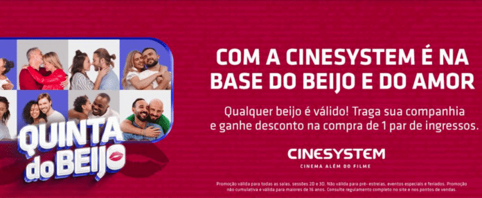 “A Cinesystem carrega um DNA jovem e inovador e o resultado é o sucesso e engajamento de cada ação realizada. A Quinta do Beijo foi criada em 2004 e, desde então, milhares de cinéfilos já participaram, aprovaram e querem repetir! Então, vamos celebrar essa retomada em grande estilo para todos curtirem juntos mais esse momento no cinema”, pontua a gerente de Marketing e Produtos da Rede, Samara Vilvert.