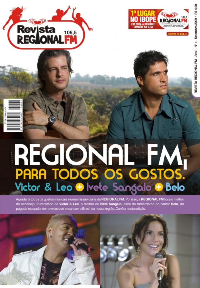 A 4ª edição da Revista Regional FM, nas bancas e supermercados da região a partir desta sexta-feira, foca a programação eclética da Regional FM, trazendo VICTOR & LÉO, IVETE SANGALO E BELO na capa da edição, o que prova como a rádio do coração toca de tudo um pouco em sua programação: o bom do sertanejo universitário, do pop, pagode e internacional.