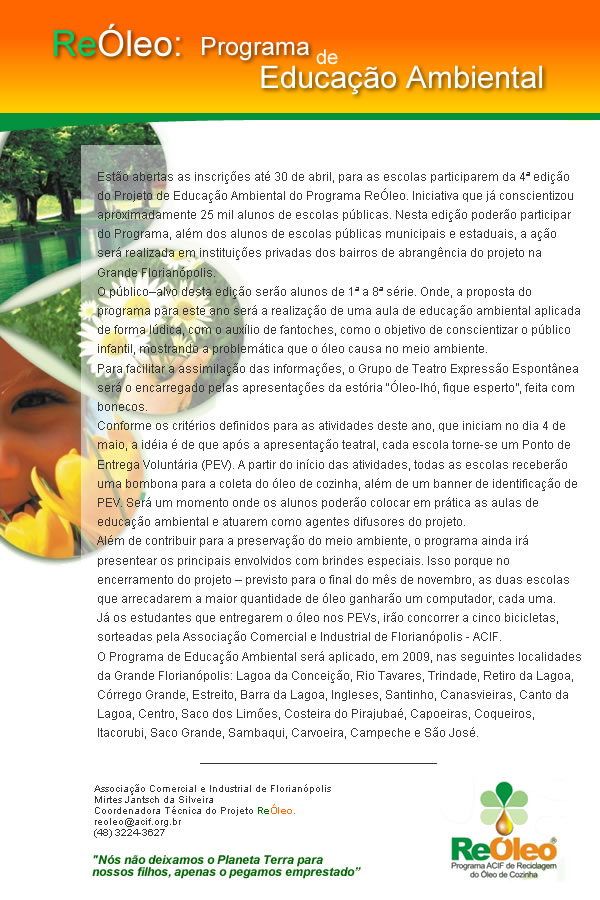 Meio ambienteReóleo: Programa de Educação Ambiental