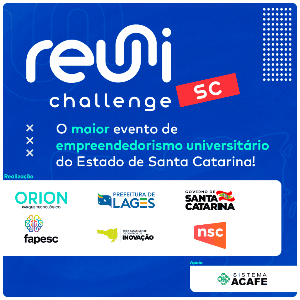 Com o objetivo de estimular a cultura empreendedora dentro das instituições de ensino superior do estado de Santa Catarina, o Reuni Challenge SC, promovido pelo Orion Parque Tecnológico, irá conectar o conhecimento universitário com demandas reais da sociedade, mentores com experiência de mercado, o ecossistema de inovação e o Governo do Estado, para o desenvolvimento de projetos inovadores em apenas um final de semana. A competição será entre 10 e 12 de setembro de 2021. As inscrições podem ser realizadas até dia 08/09.