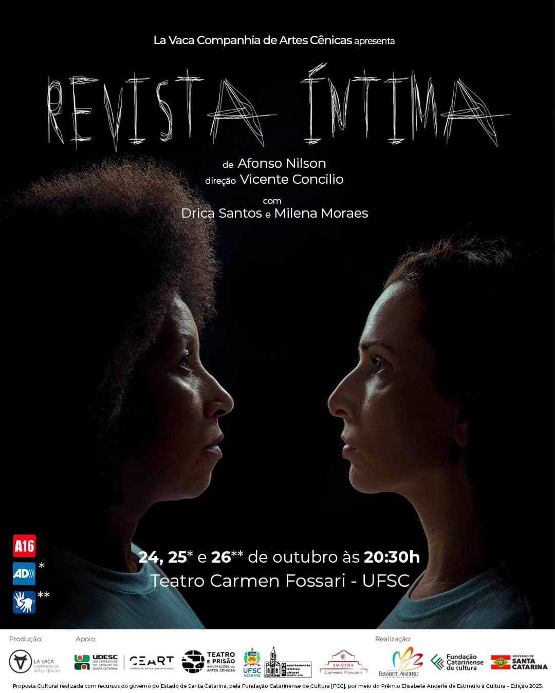 “Revista Íntima”, com classificação de 16 anos e duração de uma hora, é resultado do projeto Infiltração: teatro e encarceramento feminino na montagem do texto Revista Íntima, contemplado pelo Prêmio Elisabete Anderle de Estímulo à Cultura 2023.