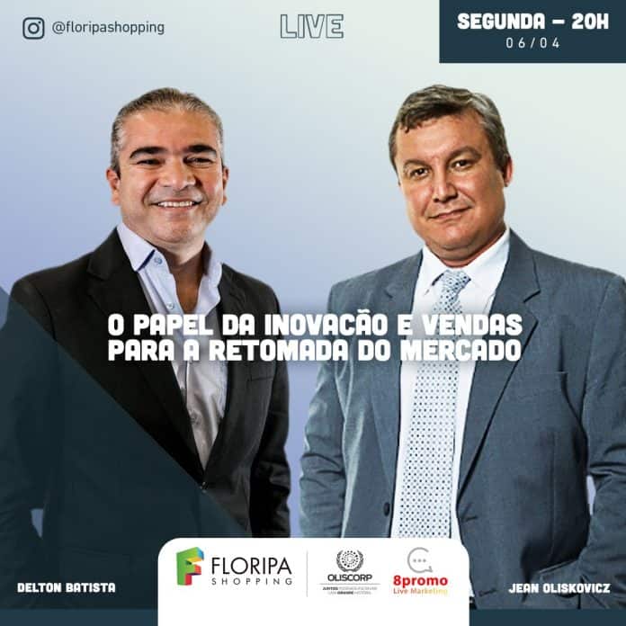 Estão todos convidados para assistir, cada um na própria casa, a Live com Delton Batista e Jean Oliskobicz que será nesta segunda-feira, 06/04, às 20h. É só acessar o Instagram do shopping que é @floripashopping. A live é uma parceria com as empresas 8 Promo Live Marketing e Instituto Oliscorp.