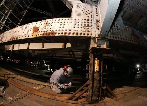 Agora, a estrutura será rebaixada em 80 centímetros – 12 centímetros na primeira noite – e cerca de 1,7 mil tonelada do peso da ponte volta a ser sustentado pela estrutura pênsil, pelos 28 cabos pendurais e 360 barras de olhal que foram substituídos na restauração e que mantêm a ponte elevada. O rebaixamento é realizado por 54 macacos com bombas hidráulicas controladas por computador.