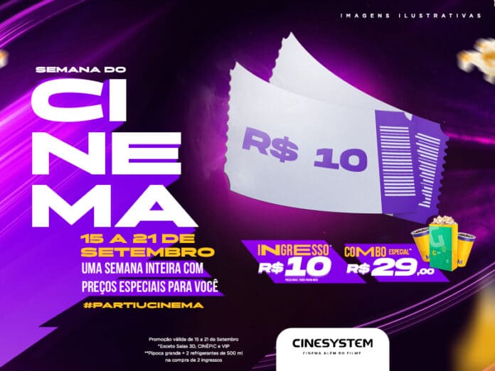 Além do valor promocional dos ingressos, a “Semana do Cinema” na Cinesystem também contará com preços exclusivos em combos. Exemplo disso é o pacote especial com 2 ingressos, 2 refrigerantes de 500ml e 1 pipoca grande, que custará R$ 49 na semana comemorativa.