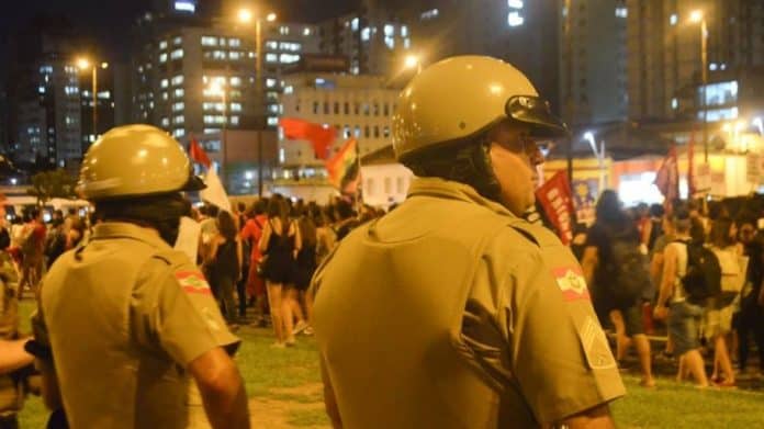 Nesta quarta-feira, 25, além da assembleia que definiu a continuidade da greve, os servidores caminharam pelas ruas do Centro de Florianópolis em protesto contra o projeto da prefeitura.