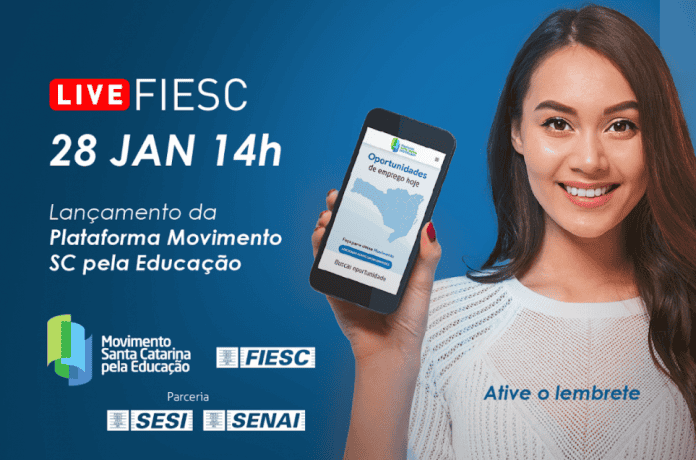 A Federação das Indústrias (FIESC), em parceria com a Fecomércio, a FAESC e Fetrancesc, lança nesta quinta-feira (28) uma plataforma on-line que oferece uma série de cursos gratuitos, cadastro de currículos e acesso às vagas anunciadas pelo setor produtivo. O lançamento da ferramenta ocorre a partir das 14 horas, durante reunião do Conselho de Governança do Movimento Santa Catarina pela Educação, e pode ser acompanhado pelo canal da FIESC no YouTube.
