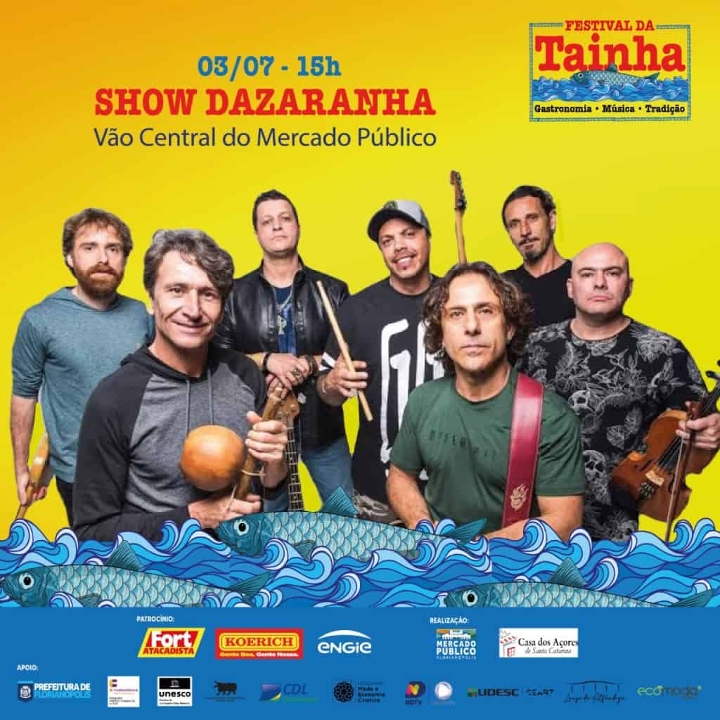 Neste domingo, 3 de julho, será realizado o encerramento do Festival da Tainha, no Vão Central do Mercado Público de Florianópolis, com show da banda Dazaranha. O evento é aberto ao público e com entrada gratuita. O show do Daza inicia às 15h.
