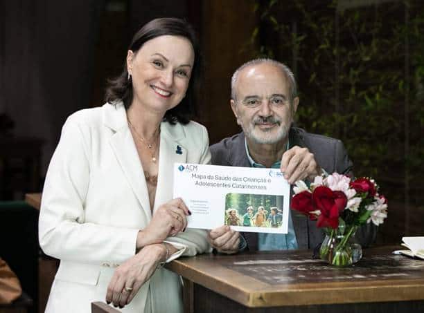 Presidente da Sociedade Catarinense de Pediatria (SCP), Dra. Nilza Medeiros Perin, e vice-presidente da Sociedade Brasileira de Pediatria (SBP), Dr. Edson Liberal, no lançamento da pesquisa, em Florianópolis