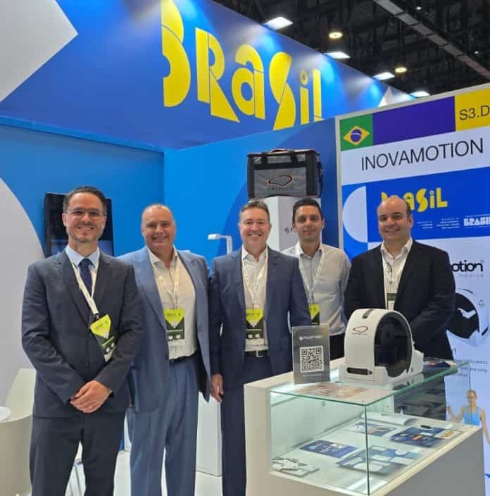 Foto: CEO e Diretores da catarinense Inovamotion apresentam inovação desenvolvida no Brasil para o mercado global na feira World Health Expo, em Dubai.