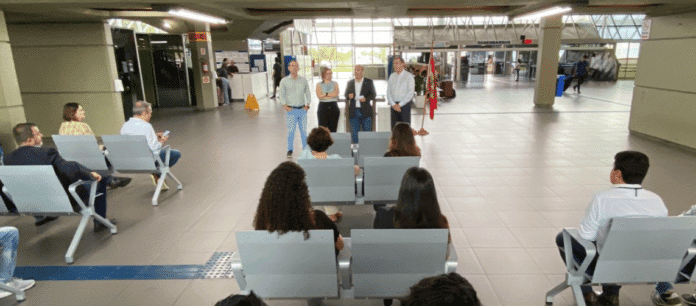 . Novos mobiliários nos saguões e instalação de equipamentos, como longarinas, bebedouros, lixeiras, mesas e cadeiras, relógios digitais, televisores e monitores informativos.