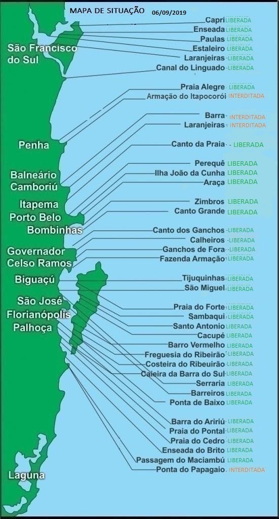 Esta é a quarta área de cultivo interditada no estado – Barra e Laranjeiras, em Balneário Camboriú, e Armação do Itapocorói, em Penha, também seguem com restrições. A medida foi necessária após exames laboratoriais detectarem a presença de ácido ocadaico nos cultivos de moluscos bivalves dessas regiões.