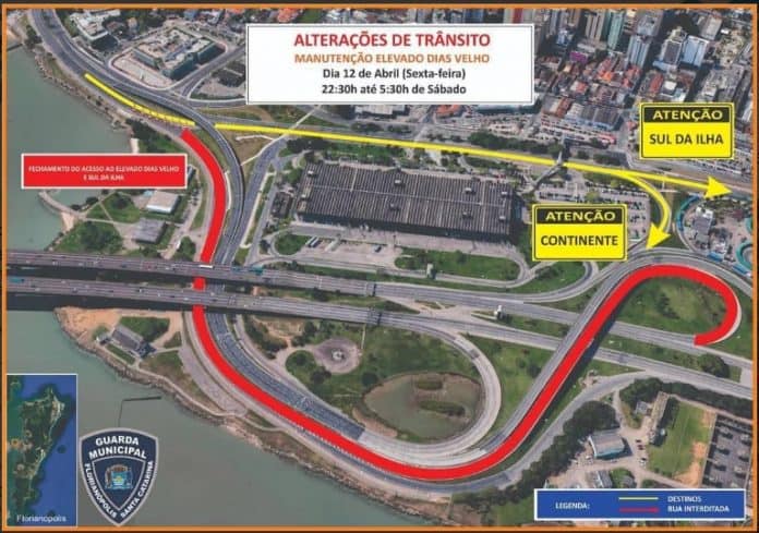 A partir das 22h30 desta sexta-feira, 12, as duas pistas do Elevado Dias Velho estarão interditadas no sentido Beira-Mar Norte/Continente. O motivo é a correção na pavimentação e nas muretas.