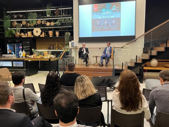 O advogado Rodrigo Schwartz, sócio do Núcleo Tributário e Aduaneiro da Menezes Niebuhr, ao lado de Carlos Berenhauser Leite, presidente do Sinduscon Grande Florianópolis com 40 anos de atuação no setor da construção civil, conduziu na noite de ontem (29) um bate-papo sobre os impactos da Reforma Tributária no mercado da construção civil.
