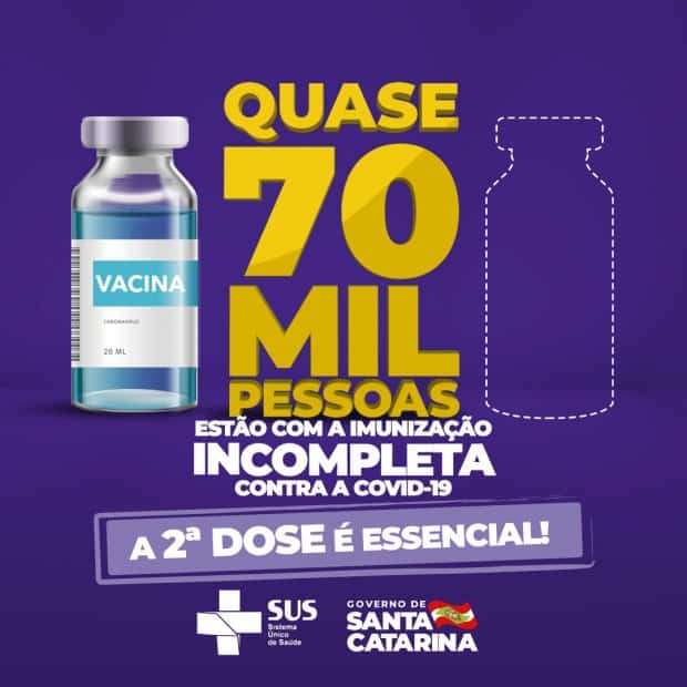 Por esse motivo, o Governo de Santa Catarina reforça o pedido para que a população não se esqueça de retornar para tomar a segunda dose.