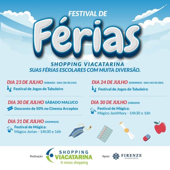 Nesta segunda quinzena de julho vai ter uma programação especial no ViaCatarina, o Festival de Férias. Serão dois finais de semana com atrações diferenciadas para que todas as famílias possam aproveitar e sempre reforçando, serão atividades com participação gratuita.