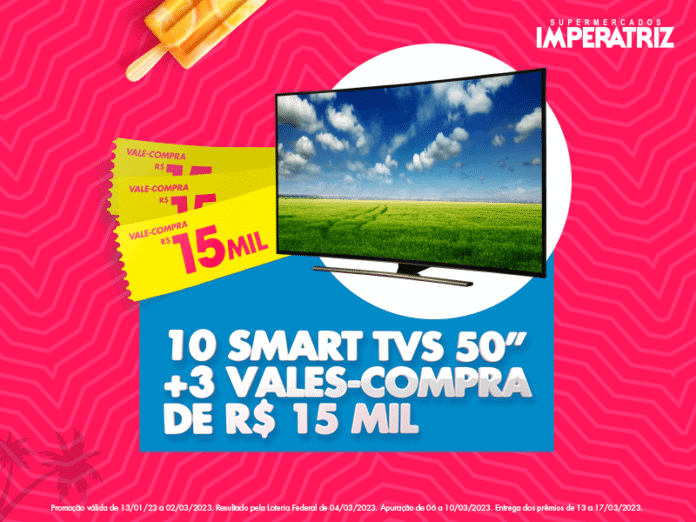 A rede de supermercados Imperatriz, Imperatriz Gourmet e Imperatriz inicia o ano com muitas ofertas e uma promoção especial. No Verão Premiado Clube Super Imperatriz, a cada R$ 30,00 em compras identificadas, os clientes ganham um número da sorte e concorrem a 10 Smart TVs de 50 polegadas e 3 vales-compra de R$ 15 mil. A campanha iniciada neste dia 13 de janeiro, vai até 2 de março, com sorteio pela Loteria Federal no dia 4 de março.