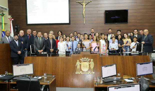 Tomaram posse nesta segunda-feira, 11, os vereadores mirins que vão atuar no biênio 2019/2020 no Legislativo da Capital. O vereador mirim, Gustavo Teixeira, falou na tribuna em nome de todos e ressaltou a importância do projeto na vida deles: “A nossa expectativa é muito grande, e sabemos do tamanho da responsabilidade que é representar o povo florianopolitano na Casa Legislativa, tenho certeza que vamos crescer como cidadãos”.